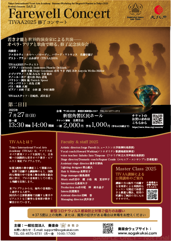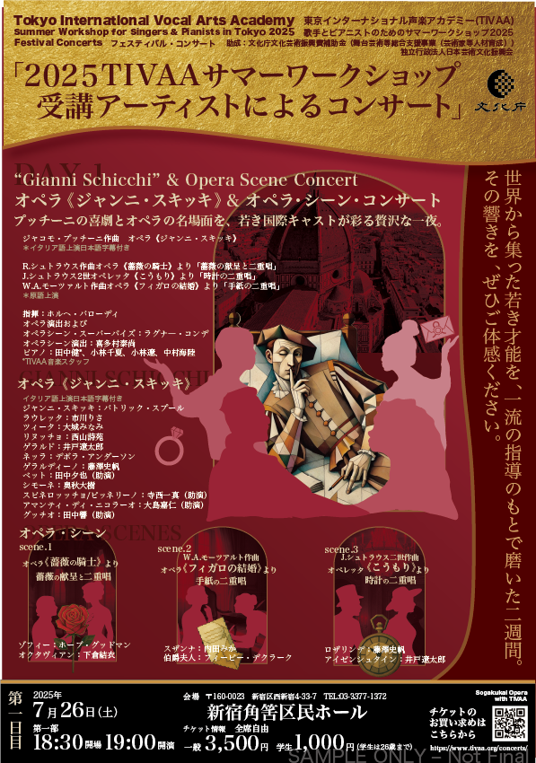 7月14日から27日の2週間、東京で行われたTIVAA(Tokyo International Vocal Arts Academy)のワークショップに参加しました。